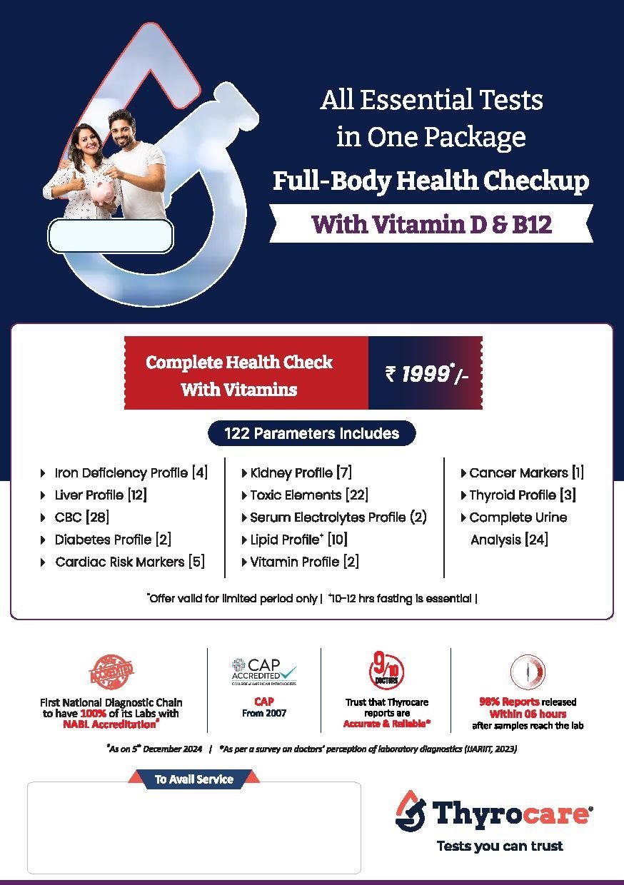 Thyrocare Technologies Limited is India’s first and most advanced fully automated laboratory, serving through 700+ service partners across the nation with NABL, CAP, and ISO 9001 certifications.